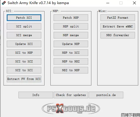SAK转换工具英文全称Switch Army Knife,是一款专为Switch游戏玩家们打造的便捷ROM转换格式工具,在yuzu模拟器下无法使用NSZ格式打开,就可以使用这个格式转换工具,转换为NSP格式进行打开。Switch Army Knife支持对NSP、NSZ、XCI、XCZ等多种不同ROM的相互转换,同时还能将游戏的DLC和更新补丁直接打包到游戏ROM中去,省去了多次操作步骤,更加方便玩家进行游戏和各种补丁DLC的管理。SAK格式转换工具功能界面直观简洁,使用也很简单,没有复杂的操作过程,新手用户也能立马上手,喜欢在电脑上玩Switch游戏的小伙伴千万不要错过,欢迎前来下载使用!