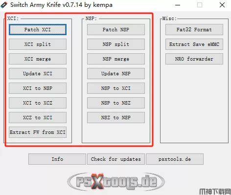 支持对nsp、nsz、xci、xcz等多种不同的ROM格式进行相互转换