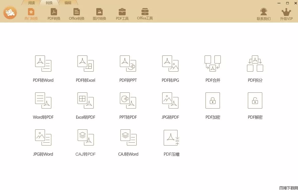 支持15种互转:如PDF、Word、Excel、PPT、JPG等格式互转,如pdf转word、pdf转jpg、Word转PDF等;并提供PDF加密、PDF解密、PDF合并、PDF拆分、PDF压缩等功能。