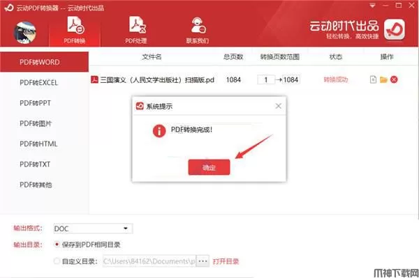 5、转换完成后会出现弹窗提示,点击“确定”即可。