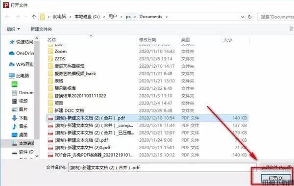 2、在左侧列表中选择需要的转换方式,然后点击主界面中央区域,打开文件添加窗口。在新窗口中找到并选中需要转换的PDF文件,再点击右下方的“打开”按钮。