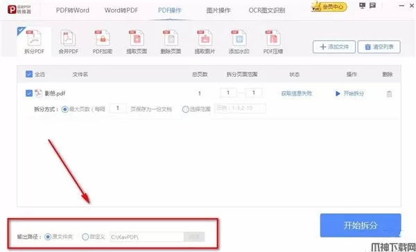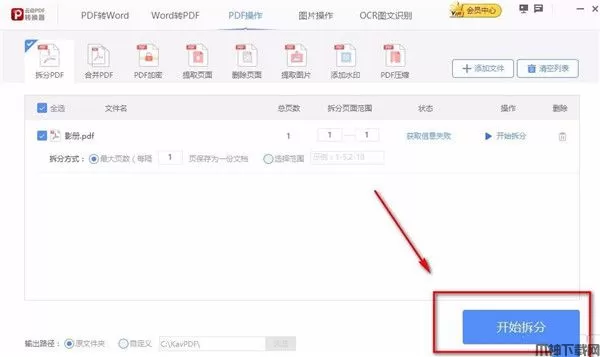 7、完成以上所有步骤后,我们在界面右下角找到“开始拆分”按钮,点击该按钮就可以开始拆分PDF文件了。
