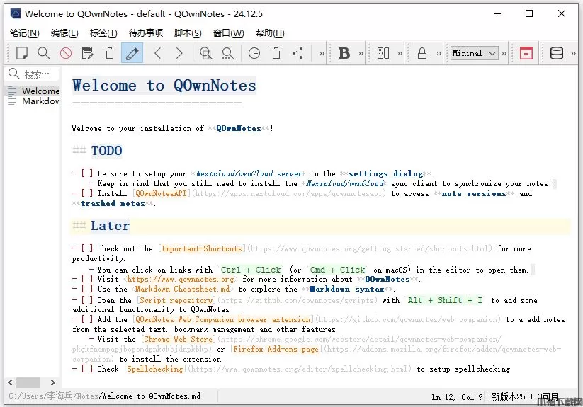QOwnNotes中文版是一款开源的跨平台的笔记与待办事项管理应用,支持 Markdown 编辑与实时预览,可对笔记进行标签分类、全文搜索,并支持插入图片与超链接。