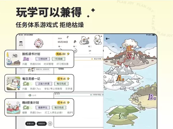 丰富的桌面小组件,支持多种大小、样式及倒数日,展示计划&美化桌面一举多得!打卡签到即可获得新主题和精美贴纸,随心搭配,让做计划变得更有趣,还有超多可爱的图标和头像等你来解锁哦!
