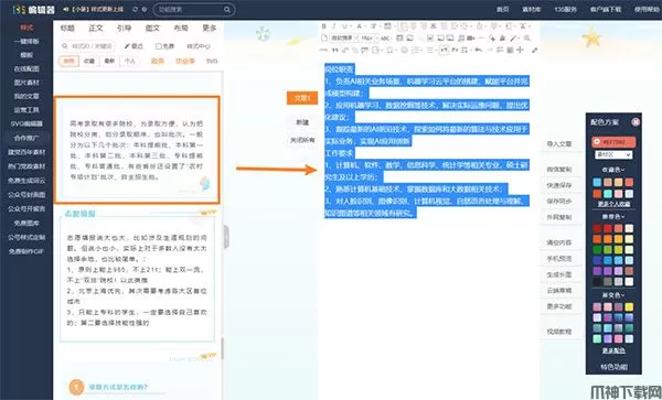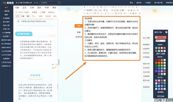 鼠标选中编辑区域中的图文,在左侧的样式栏中选择一个样式,点击就可以完成秒刷排版。