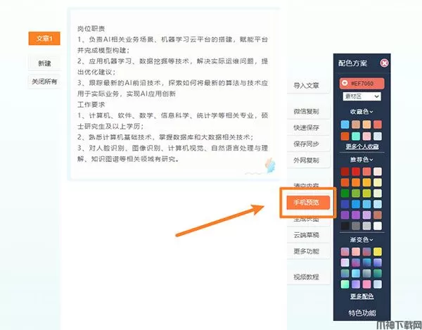 完成文章的排版后,可以使用【手机预览】功能,扫码查看排版在手机上的显示效果。