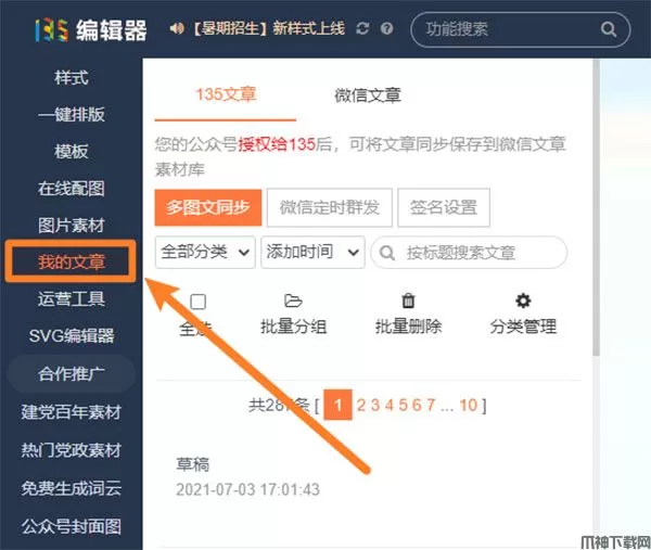 点击左侧【我的文章】,即可找到刚刚已经保存的内容。