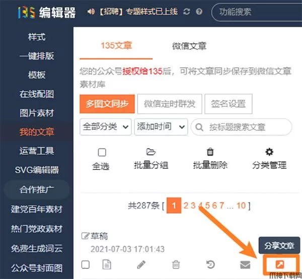 在【我的文章】中,点击【分享文章】按钮,提交审核通过后,就可以生成永久链接进行分享。