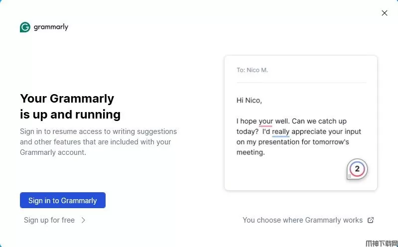 Grammarly电脑版是一款是一款便捷实用的英语写作辅助软件,这款软件可以帮助用户检查一些单词错误、语法错误、时态错误等,并提供更准确的使用方法。