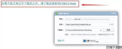 4、会把选中文献题录导出成文件,直接弹出下载对话框,选择位置,单击“下载”即可。如果没有E-Study软件下载完题录文件后,单击图示箭头处链接下载即可。