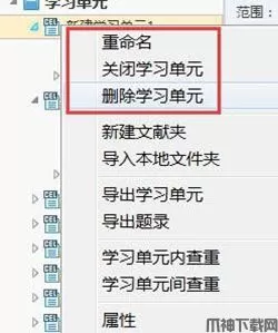 7、后期还可以选中文献夹或学习单元,右击鼠标,进行重命名、删除等操作。