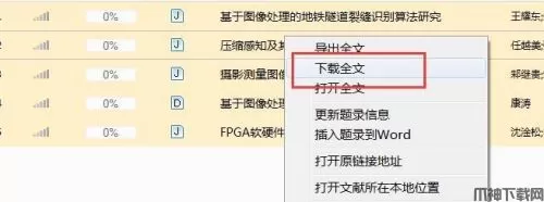 8、此时仅导入了文献,并没有下载文献,选中要下载的文献,右击鼠标,在弹出菜单中选择“下载全文”即可打开“下载器”界面,显示下载进度。