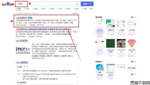 1、首先在百度首页搜索“CNKI”,打开搜索结果的第一条,如下图所示。