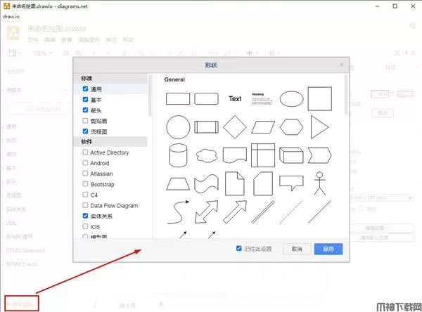 2、提供了多种图形供用户挑选,如箭头、基本、通用等;