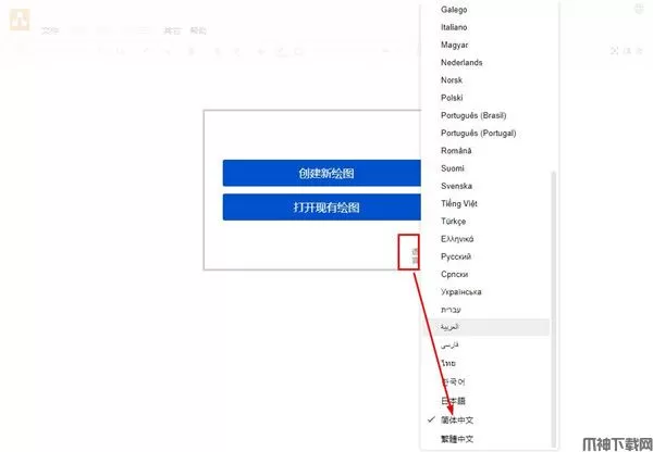 1、首先打开draw.io desktop,发现默认是英文语言,这时点击Language选择简体中文,再关闭软件后重新打开就是中文界面了;