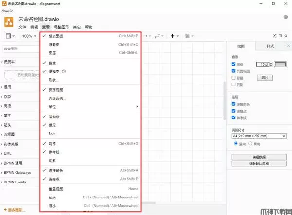 drawio绘图工具是一款非常专业的流程图制作工具,对于经常需要制作流程图的办公人士来说,支持各种类型的流程图绘制,并且软件开源跨平台,任何用户都能免费使用,简单的中文界面,没有复杂的操作,就能快速编辑制作你所需要的流程图。