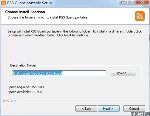 3、安装软件位置目录放置C:\Program Files (x86)\RSS Guard,修改点击browse按钮,点击next