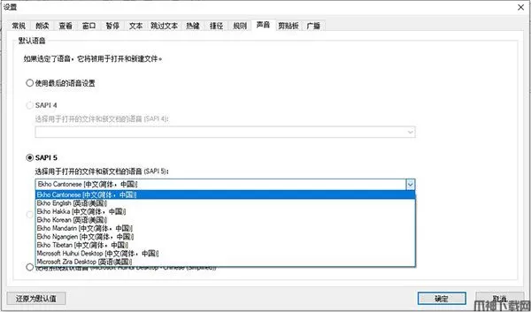 3、需要切换balabolka的声音的话,可以通过【选项】-【设置】-【声音】来切换即可。