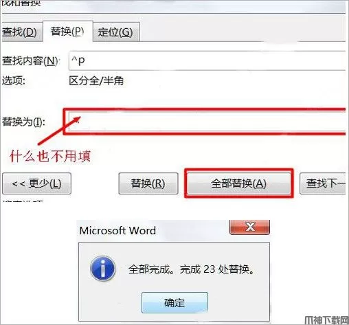 5、在【替换为】框里 什么都不用填,连空格都不要,点击【全部替换】;