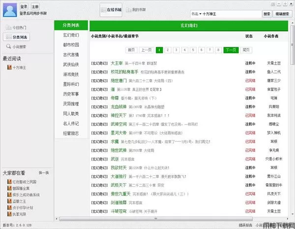 小强小说阅读器电脑版使用方法很简单,你只需要在界面上放的书名搜索框输入书名,或者在下拉框中选择作者进行搜索,输入后点击搜索就可以了。你也可以选择精确搜索、万能搜索以及新增小说等操作。