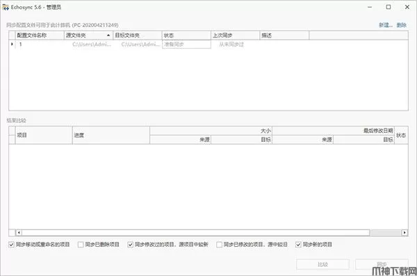 2、一旦创建了同步配置文件,所有操作都将在一个窗口中执行,该窗口设计为尽可能易于使用。