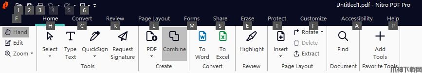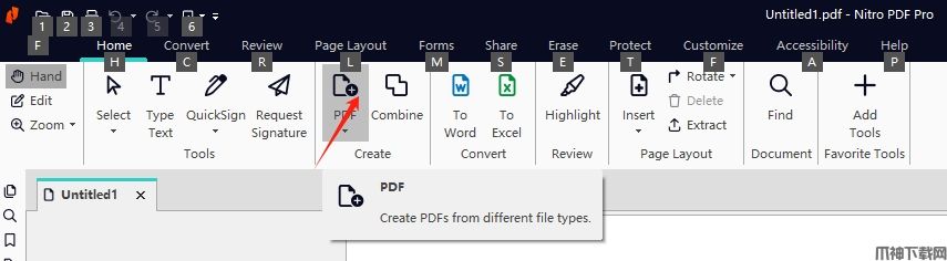 1、通过在“主页”选项卡下的“创建”部分中选择“ PDF”来创建新的PDF。