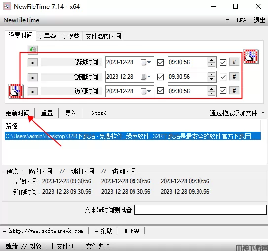NewFileTime是一款可以修改文件属性的小工具,它可以对电脑中的文件、软件、网页等进行时间上的修改,将属性中显示的创建时间、访问时间、修改时间三项调成其它时间。