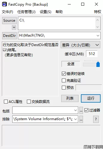 在“设置→常规设置”菜单中可以定义缓存的空间大小,它直接关系到复制时的速度快慢,现在机器配置都很强悍,这里设定值高些不成问题。相关的定义有I/O缓存设置、I/O设置、复制和删除、日志写入等项目。