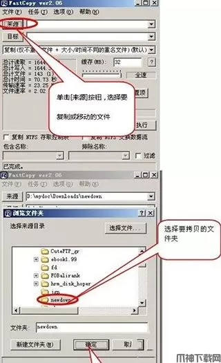 2、单击[来源]按钮,弹出一个窗口选择要复制或移动的文件,然后单击[确定]按钮,如图所示: