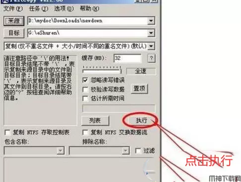 5、选择好文件来源与目标后,我们就可以单击[执行]按钮来进行复制操作,如图: