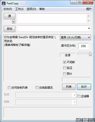 FastCopy是一款Windows上速度最快的文件复制/删除帮手软件,它的体积非常的小巧,但复制拷贝文件的速度超级快,也能保证文件的完整性,比windows 默认的复制粘贴功能强悍很多,特别是针对一些专门要进行文件复制转移的用户来说是一款文件复制利器!这款软件功能很强大,它支持 UNICODE 和超过 MAX_PATH (260 个字符)的文件路径名。FastCopy 会根据源目录和目标目录是否在相同的硬盘(或 SSD)中,自动选择不同的方法;它还能够在不使用操作系统缓存的情况下处理读取/写入,并且不会影响其它应用程序运行时的速度。不仅如此,该软件 可实现接近于设备限制的读取/写入性能;也可以指定包括/排除过滤器(UNIX 通配符样式)。这么强大的功能下,该软件运行快、不占用资源,因为不使用 MFC(仅使用 Win32 API 和 C 运行库设计)。