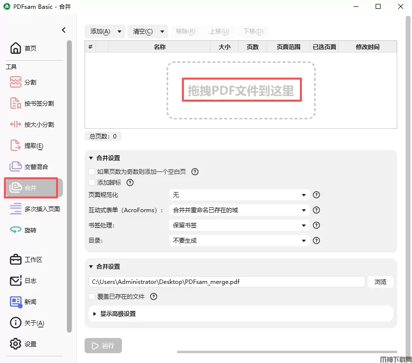 合并是最常用的PDFsam Basic功能,它让您将PDF文件结合在一起。