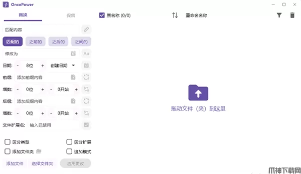 OncePower的核心功能在于其强大的批量重命名能力。它支持多种命名方式,包括但不限于替换、修改匹配内容、匹配长度、以日期命名以及前缀后缀添加等,让文件名更加规范易记。用户无需逐一手动修改文件名,只需简单设置规则,即可一键完成批量重命名,极大地提高了工作效率。