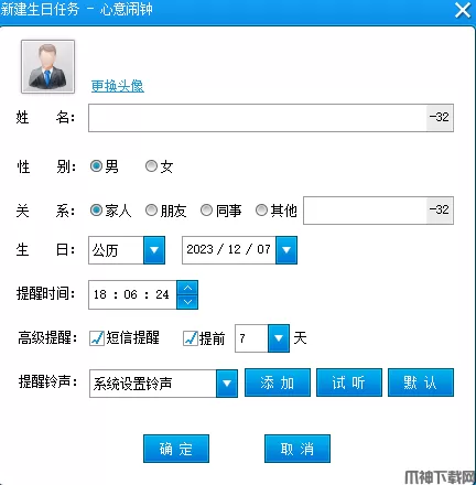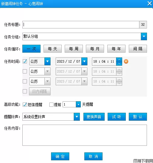 2、填写任务标题,任务分组,任务循环,任务时间,高级功能,提醒铃声等信息,铃声可以进行更换。