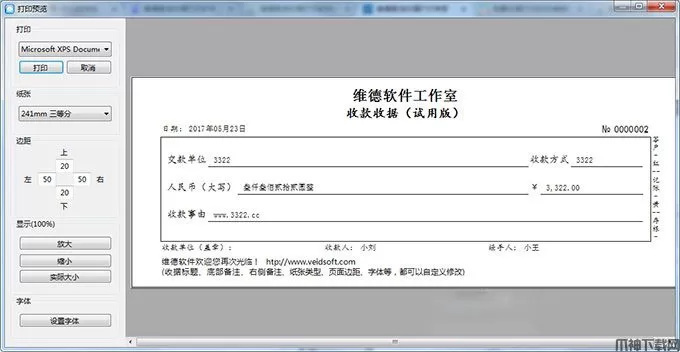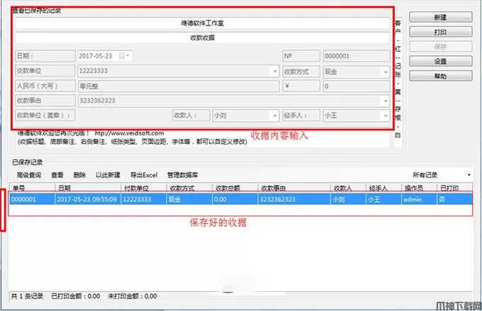 维德简洁收据打印专家官方版一款针对简洁性收款收据进行打印、管理的软件,维德简洁收据打印软件界面干净,简单!全程傻瓜式操作,没有任何技术性操作,而且还不会出错.非常适合小白!但你也别小看维德简洁收据打印软件,功能还是非常强大滴!有“交款单位”、收款方式、“收款事由”、“收款金额”、“人民币(大写)”、“收款人”、“经手人”等等,只要你想到的维德简洁收据打印软件都有。如果你需要就下载吧!