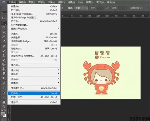 1、将图片于PS内打开,或者使用PS制图完毕后,通过“文件——打印”路径打开PS的“打印设置弹窗”