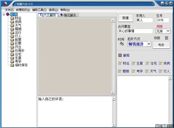 玄奥六爻电脑版是一款专业的算命软件,对于许多现代社会的人来说,算命可以说是迷信,很多人都不信,但是这并不妨碍人们找一个好日子结婚,订婚,搬新房等等,虽然现在讲究科学,但是并不妨碍人们查看运势。玄奥六爻还能够通过使用者的姓名、性别、占事、出生日期等等进行预测吉凶、测财运、测姻缘等等,想要算一下命,找个好日子的用户不要错过这款软件哦。