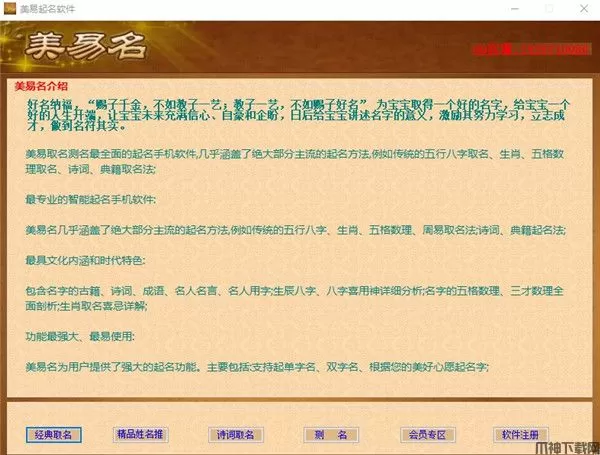 美易取名软件是一款简单的取名小工具。主要功能有诗词取名、经典取名、精品推荐、测名、五行字典、取小名。想给你宝宝取个比较有文化,听上去有诗意的话用诗词取名就可以了,传统的根据五行来取名的话就选经典取名了,精品推荐则是软件作者为你筛选的一些优质名字,取小名这个功能还是比较有特色的,一个好听的小名可以让人朗朗上口,另外还提供测名功能。美易取名软件界面简洁,操作简易,是一款非常全面的取名工具。