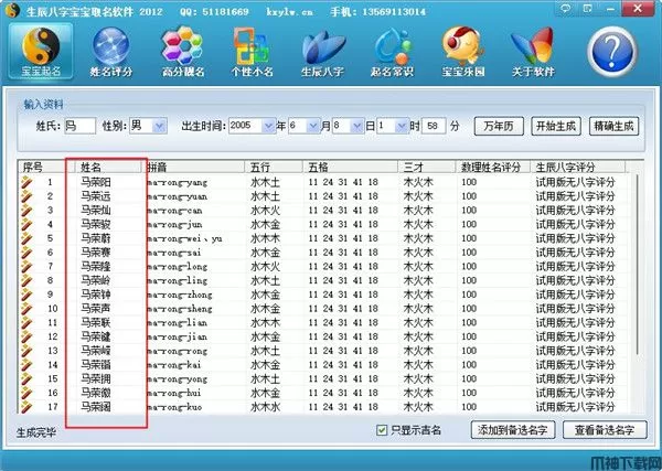 4、可以一键自动生成上千个既好听又高分又适合宝宝生辰八字的精美好名,供用户挑选。简单的操作,专业的结果,是最具权威的专业宝宝起名软件。