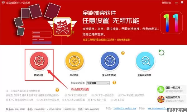 1、支持由数字、字母、中文汉字混合的姓名、手机号、身份证号等各种名单;支持图片照片抽奖;