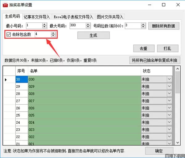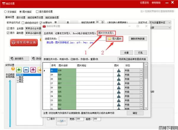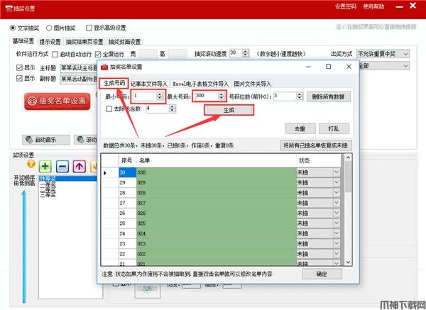 11、支持自动生成编号,可自动删除不想出现的数字,支持从TXT或Exlce中导入抽奖人员;