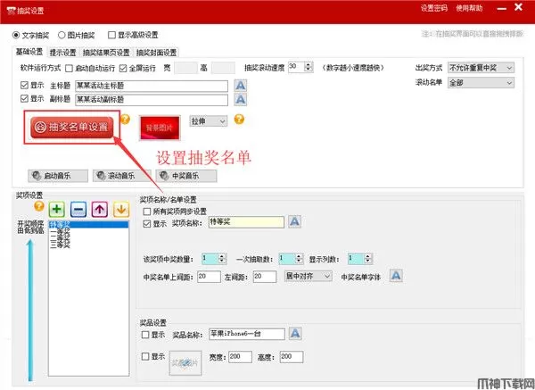 2、进入抽奖设置界面,点击抽奖名单设置浏览选择或生成抽奖名单。