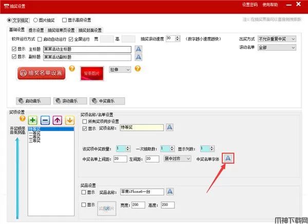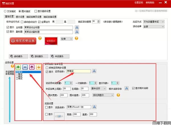 【⬆】【⬇】向上或向下调整奖项的顺序