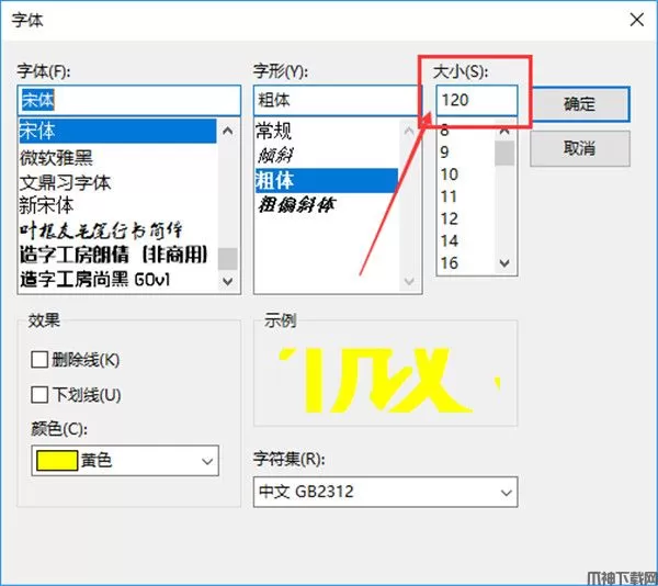 4、字体可设置任意大小,可以直接输入数字,数字越大字越大。如:120