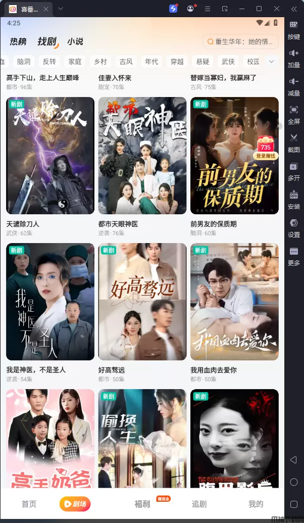 喜番免费短剧电脑版是一款借助安卓模拟器而运行的免费看短剧软件。