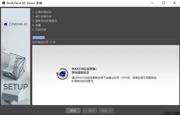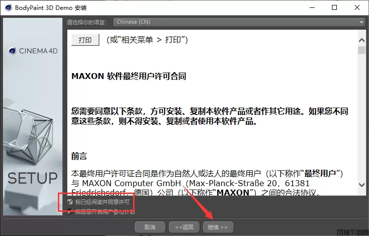 1、打开bin文件夹,双击安装程序MAXON-Inst.exe。