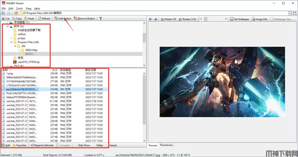 2、这是第二张图片所在文件夹的路径,可以看到在F盘子文件夹中,随后点击左上角红箭头处“Add Button”。