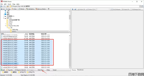 1、选择多个图片,点击下方红箭头处“Slide Show”。