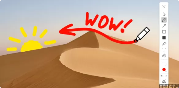 2、在拍摄时直接在屏幕快照或视频的未来上绘制,描画,显示箭头或打印文本。