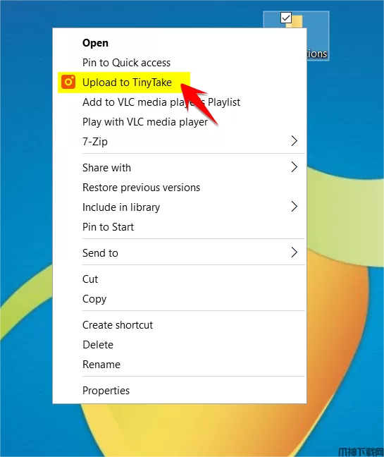 1、右键单击本地驱动器中的文件或文件夹,然后单击上传到 TinyTake。您将看到 TinyTake 对话框,显示上传进度,完成后会生成一个链接,您可以与任何人分享。